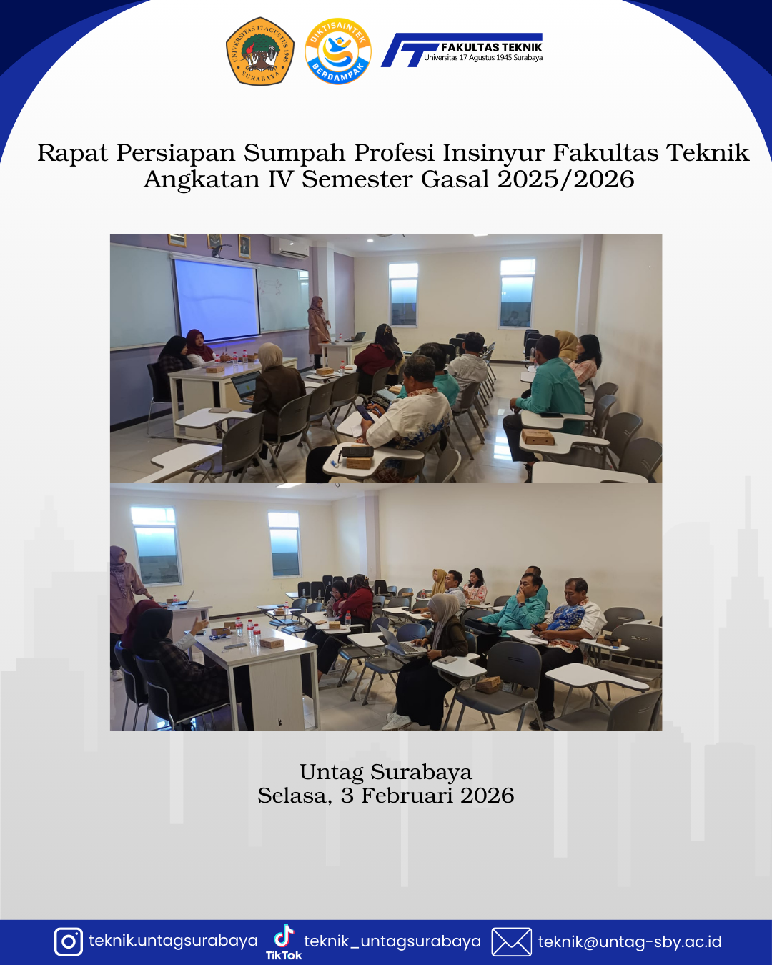 Berikut informasi detail tentang Beasiswa Prestasi di Fakultas Teknik Untag Surabaya.