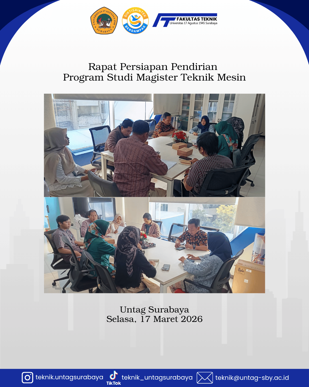 Fakultas Teknik Untag Surabaya bersama dengan jajaran Dekanat dan Kepala Program Studi di lingkungan Fakultas Teknik melakukan rapat strategi terkait dengan kebijakan Fakultas Teknik selama Periode 2025-2029